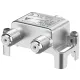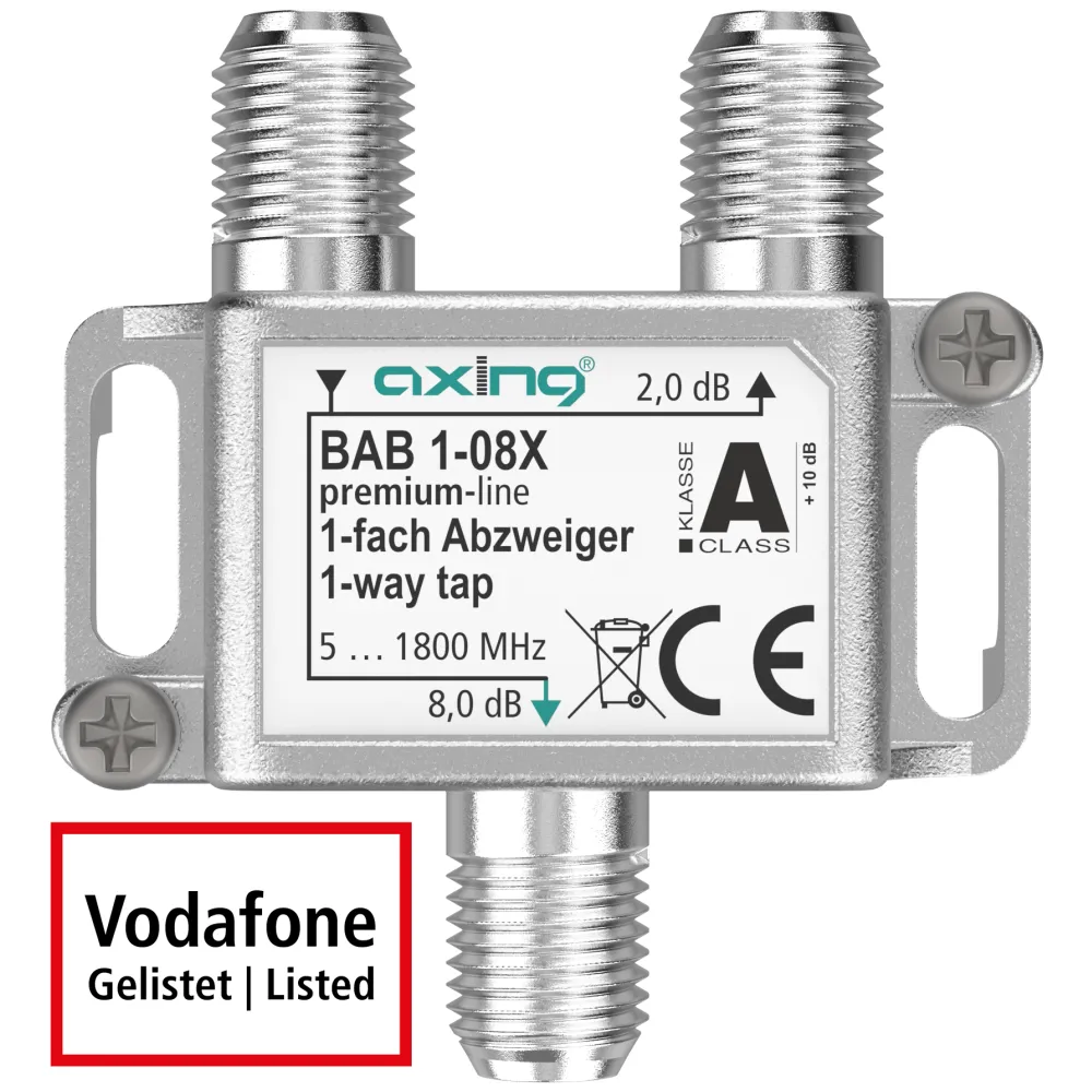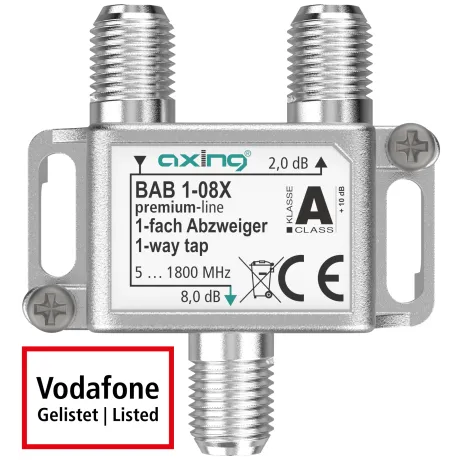 F-Technik, 5-1800MHz, Ein- und Ausgänge brummentstört, hohe Rückflussdämpfung, Gehäuse Druckguss mit Erdklemme und separatem Montagesockel, Durchgangsdämpfung >2dB, Gehäuse 1-fach 45x55x25mm, 2-fach 70x55x25mm, Klasse A - Schirmungsmaß >90dB, Vodafone Kabel Deutschland gelistet, DOCSIS 3.1 / 4.0