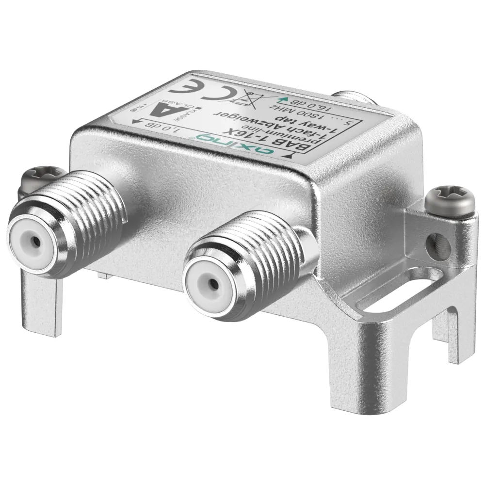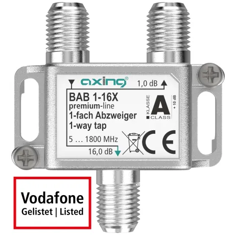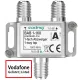F-Technik, 5-1800MHz, Ein- und Ausgänge brummentstört, hohe Rückflussdämpfung, Gehäuse Druckguss mit Erdklemme und separatem Montagesockel, Durchgangsdämpfung >2dB, Gehäuse 1-fach 45x55x25mm, 2-fach 70x55x25mm, Klasse A - Schirmungsmaß >90dB, Vodafone Kabel Deutschland gelistet, DOCSIS 3.1 / 4.0