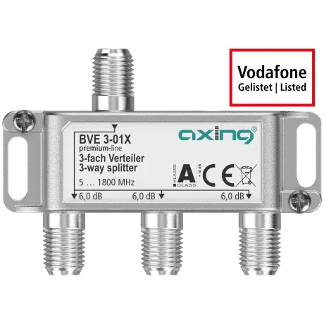 F-Technik, 5-1800MHz, Ein- und Ausgänge brummentstört, hohe Rückfl ussdämpfung, Gehäuse Druckguss mit Erdklemme und separatem Montagesockel, Gehäuse 2-fach 48x50x26mm, 3-fach 72x50x26mm, 4-fach 72x50x26mm, 6-fach 117x60x27mm, Klasse A - Schirmungsmaß >90dB, Vodafone Kabel Deutschland gelistet, DOCSIS 3.1 / 4.0