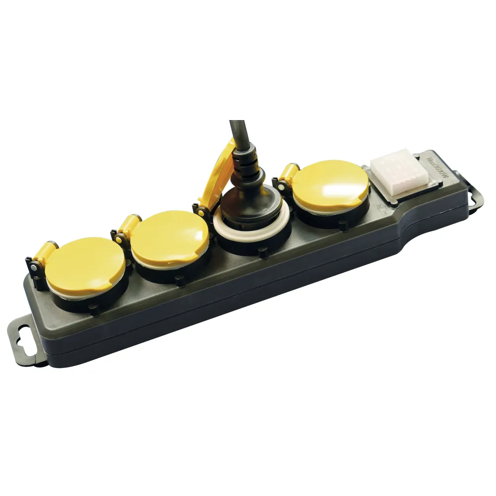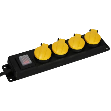 4-fach Tischdose m.Klappdeckeln IP44 GNPBK04 schwarz/gelb, mit Schalter