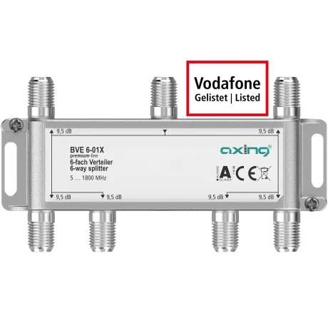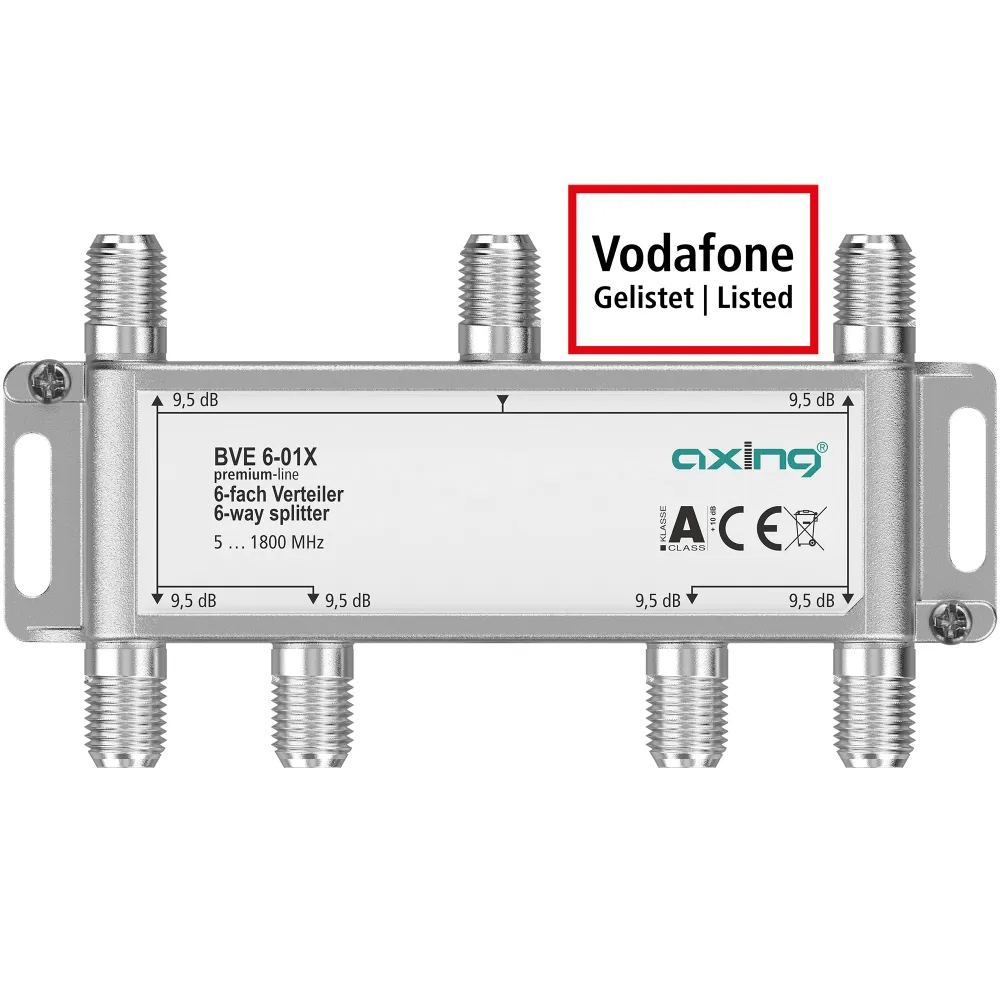 F-Technik, 5-1800MHz, Ein- und Ausgänge brummentstört, hohe Rückfl ussdämpfung, Gehäuse Druckguss mit Erdklemme und separatem Montagesockel, Gehäuse 2-fach 48x50x26mm, 3-fach 72x50x26mm, 4-fach 72x50x26mm, 6-fach 117x60x27mm, Klasse A - Schirmungsmaß >90dB, Vodafone Kabel Deutschland gelistet, DOCSIS 3.1 / 4.0