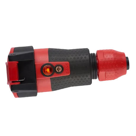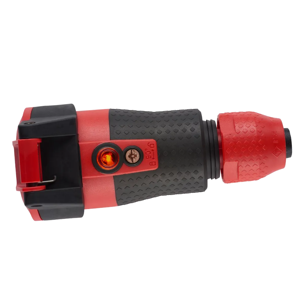 Made in Germany, 2-Komponenten Stecker aus extrem belastbaren Hochleistungs-Kunststoff mit garantiert höchster Festigkeit für erschwerte Bedingungen, mit zentraler Leitungseinführung, optimale Abdichtung durch außenliegende, schraubenlose Kabelverschraubung mit Zugentlastung und Knickschutztülle, doppeltem Erdungssystem und Hammerschlagzeichen T, medienbeständig gegen Zement, Teer und Mineralöle, optische, integrierte Spannungsanzeige, UV-beständig, temperaturbeständig -40° bis +80°C, IK08, spritzwassergeschützt IP54, für Leitungen bis H07RN-F 3x2,5mm², VDE
