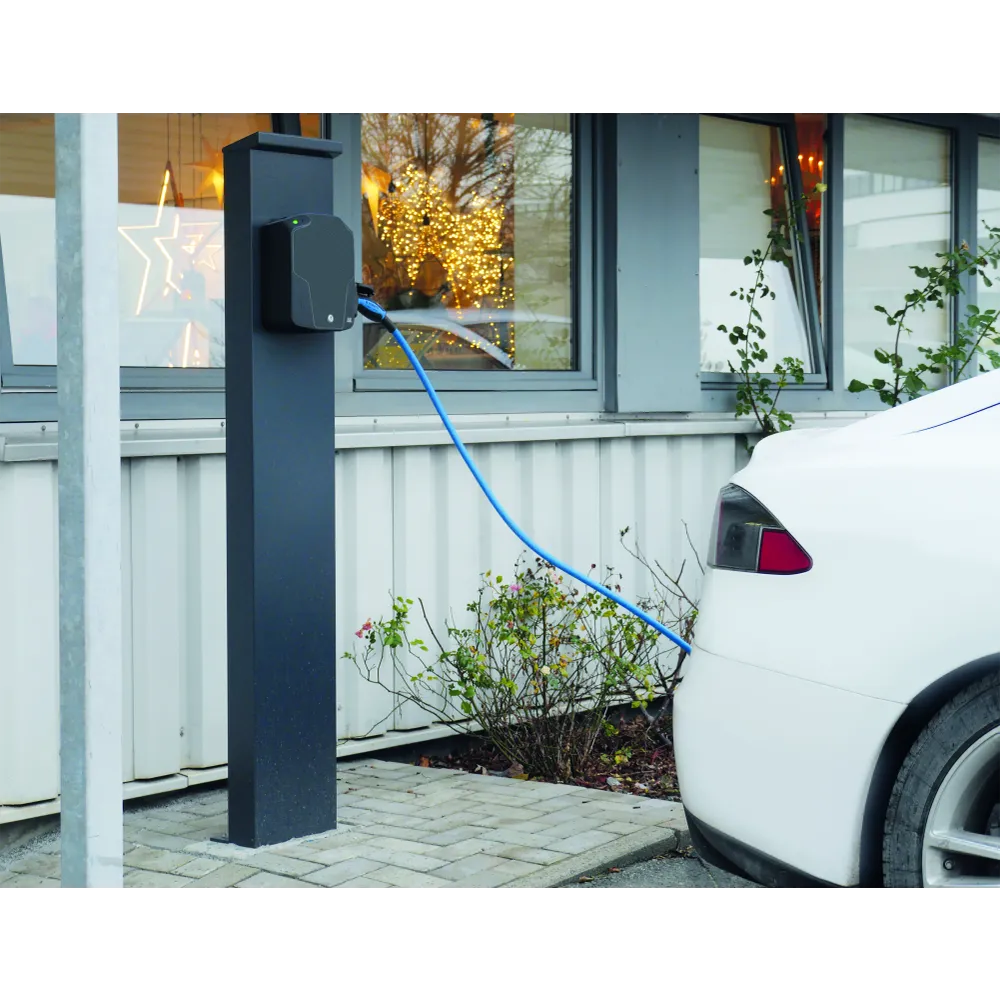 mit fest integriertem Ladekabel Länge 6,35m mit Typ 2 Kupplung und integriertem FI-Fehlerstromschutzschalter Typ A 30mA, Ladestrom max. 16A, Ladeleistung max. 11kW, Nennstrom 16A, Vorsicherung 16A