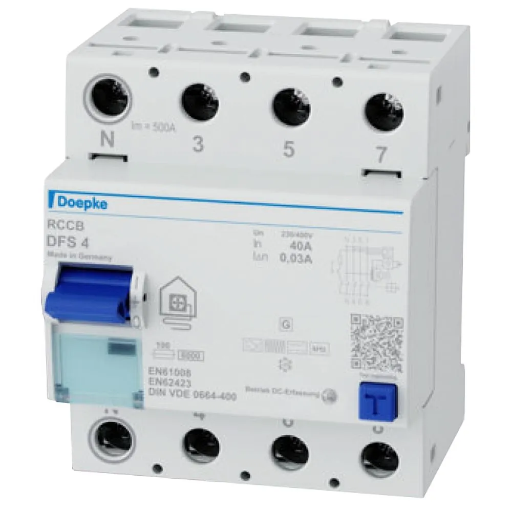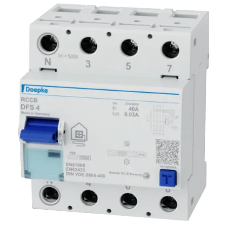 Typ B, für Fehlerströme mit Frequenzen und Mischfrequenzen von 0 Hz bis 20 kHz, geeignet für private, gewerbliche und industrielle Installationen mit TN-S-, TT- und TN-C-S-Systemen, in denen Wärmepumpen zum Einsatz kommen, HP-optimierte Kurzzeitverzögerung für die Absicherung von Wärmepumpen, berührungssicher, Kurzschluss-Schaltvermögen 10kA, Kältefest bis -25C, Bauhöhe 85mm, IP40, entsprechend DIN VDE 0664-400, Brandschutz gemäß VDE 0100-420, VDE