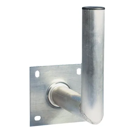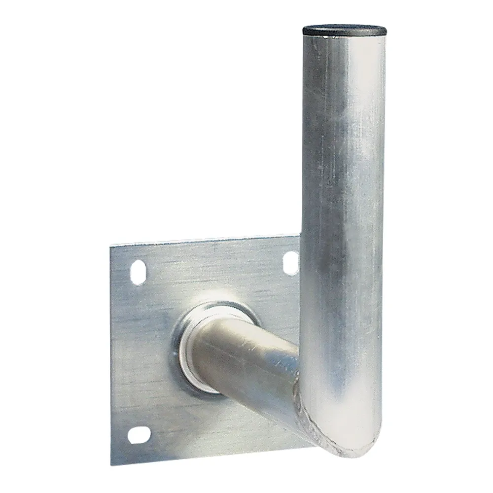 Rohr-Ø 50x2,5mm, Bodenplatte 150x150x5mm, 4-Loch-Befestigung, gewinkelt, Material Aluminium, Höhe 250mm, mit Windlaststabilität für Windgeschwindigkeiten von 160-210 km/h, geeignet für Spiegel-Ø 90cm