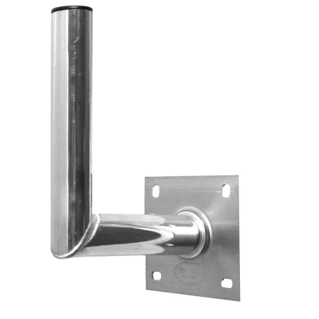 Rohr-Ø 50x2,5mm, Bodenplatte 150x150x5mm, 4-Loch-Befestigung, gewinkelt, Material Aluminium, Höhe 250mm, mit Windlaststabilität für Windgeschwindigkeiten von 160-210 km/h, geeignet für Spiegel-Ø 90cm
