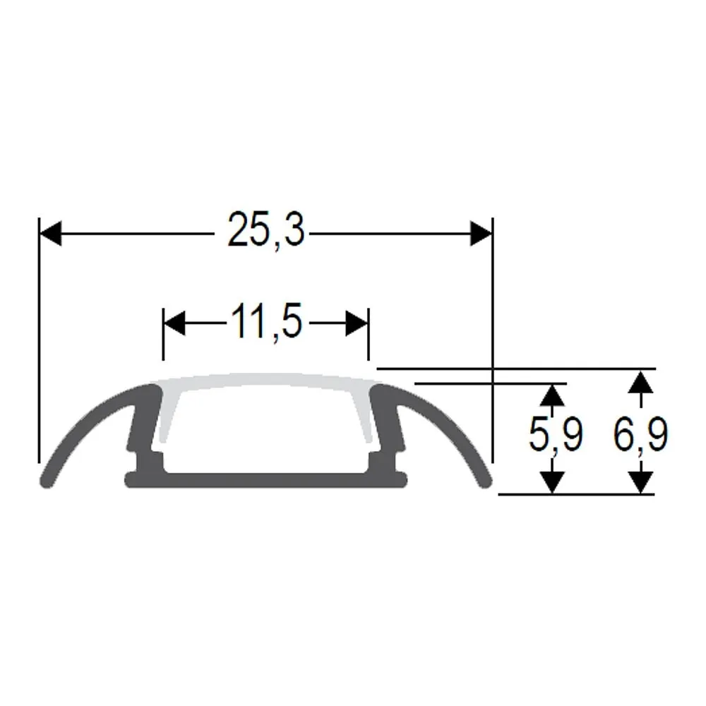 für Strips bis Breite max. 10mm und max. 10W Leistung je Meter, eloxiert, inklusive Kunststoff-Abdeckung opal matt ◻25,3x6,9mm
