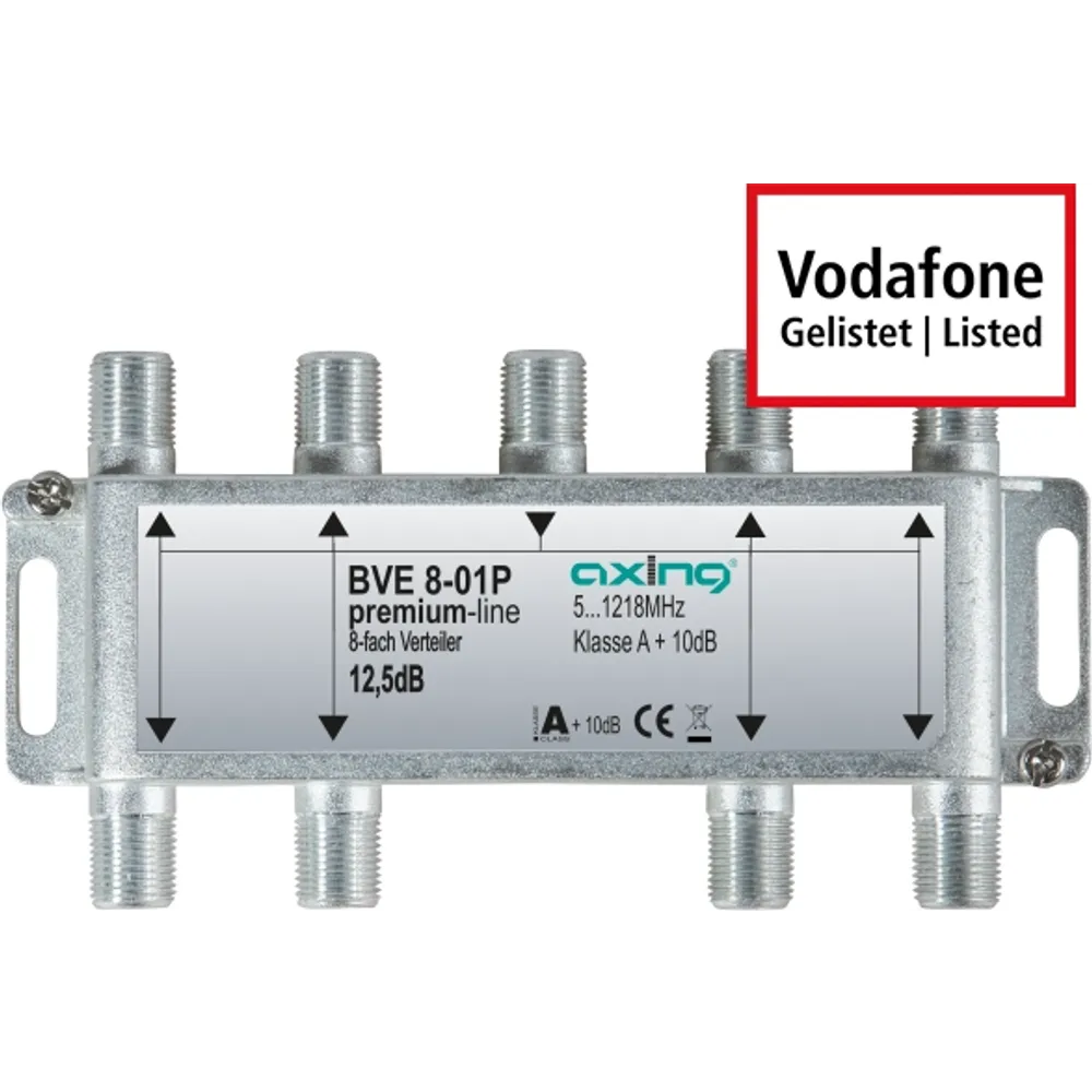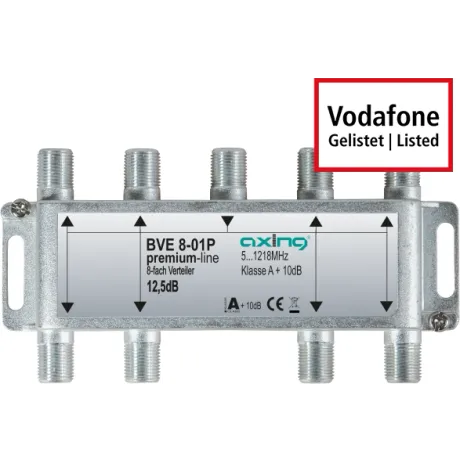 F-Technik, Multimedia-tauglich, Kontakte vergoldet, 5-1218MHz, Ein- und Ausgänge brummentstört, hohe Rückflussdämpfung, Gehäuse Druckguss mit Erdklemme und separatem Montagesockel, Gehäuse 2-fach 67x55x30mm, 3-fach 89x55x30mm, 4-fach 89x55x30mm, 6-fach 142x64x32mm, 8-fach 142x64x32mm, Klasse A - Schirmungsmaß >90dB, Vodafone Kabel Deutschland gelistet