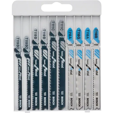 enthält Blätter für gerade und Kurvenschnitte in Weichholz, zuverlässige Schnitte in Metall und Metallrohre, T 119 BO Basic for Wood / T 119 B Basic for Wood / T 111 C Basic for Wood / T 218 A Basic for Metal / T 118 G Basic for Metal / T 118 A Basic for Metal / T 118 B Basic for Metal