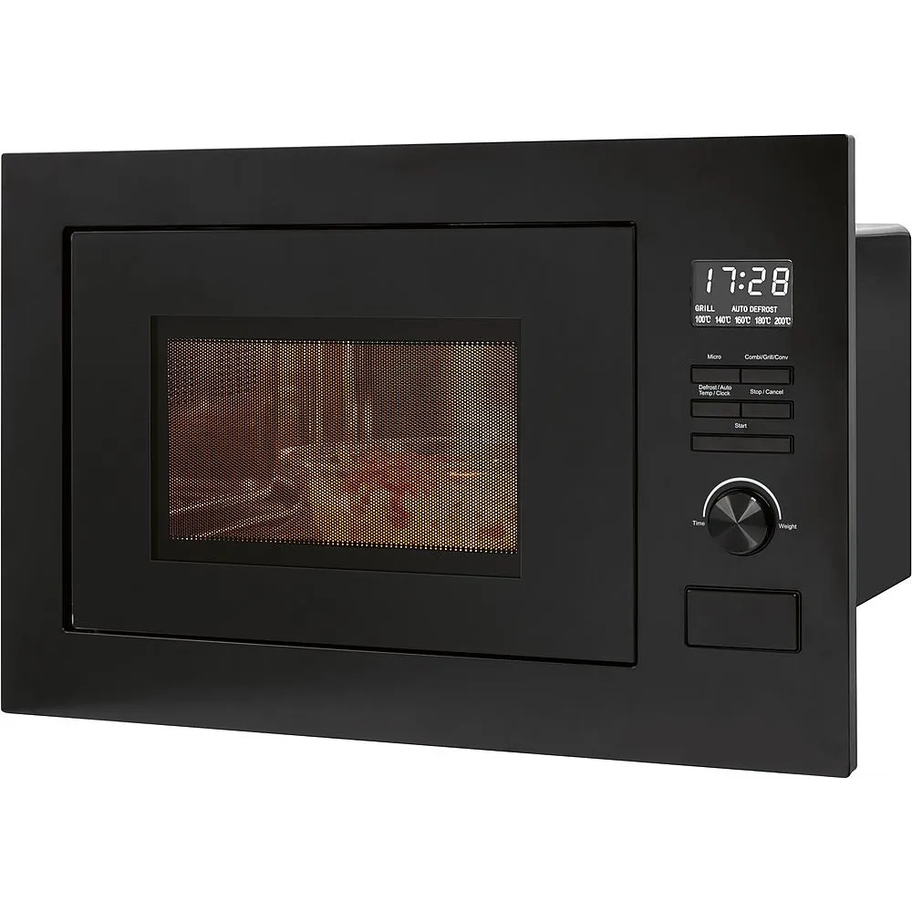 mit Grill und Heißluft, Drehteller Ø ca. 270mm und Grillrost Ø ca. 222mm, 5 Mikrowellen-Leistungsstufen, 2 Kombi-Leistungsstufen für Grill/Mikrowelle, 2 Kombi-Leistungsstufen für Heißluft/Mikrowelle, 1 Grillstufe, 5 Heißluft-Temperatureinstellungen, 8 Automatik-Programme, Auftau- und Schnellstart-Programm, 60-Minuten-Timer mit akustischem Endsignal, Timer-Funktion mit bis zu 24 Stunden Vorlauf, Digitaluhr und Kindersicherung, Garraum Edelstahl 25l beleuchtet, Mikrowellenleistung 900W, Grillleistung 1300W, Heißluft 2300W, Gehäuse mit Edelstahl-Front rahmenlos B595xH390, Einbautiefe 351mm