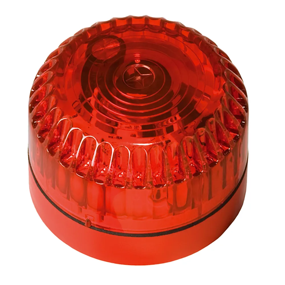 mit Anlaufstrombegrenzung, automatische Synchronisation, konstante Leistung und Sabotage-Schutz, Blitzrate 1 Hz, Lichtstärke 10 Candela, Betriebstemperatur -25°C bis +70°C, Linse Polycarbonat, Sockel ABS-Kunststoff rot Ø93x67mm, IP54, VdS