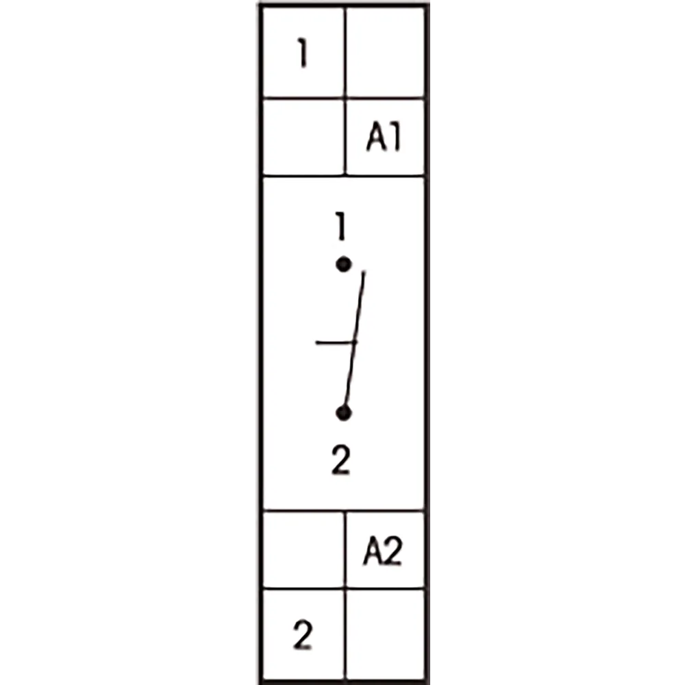 mechanisch, aufrastbar auf Hutschiene 35mm, Handbetätigung, Schaltstellungsanzeige, Schraubklemmen bis 6mm², Berührungsschutz, 1-polig, Schaltkontakt 250V/16A potentialfrei, 100% ED, Glimmlampenlast 5mA, Breite 18mm, Einbautiefe 55mm