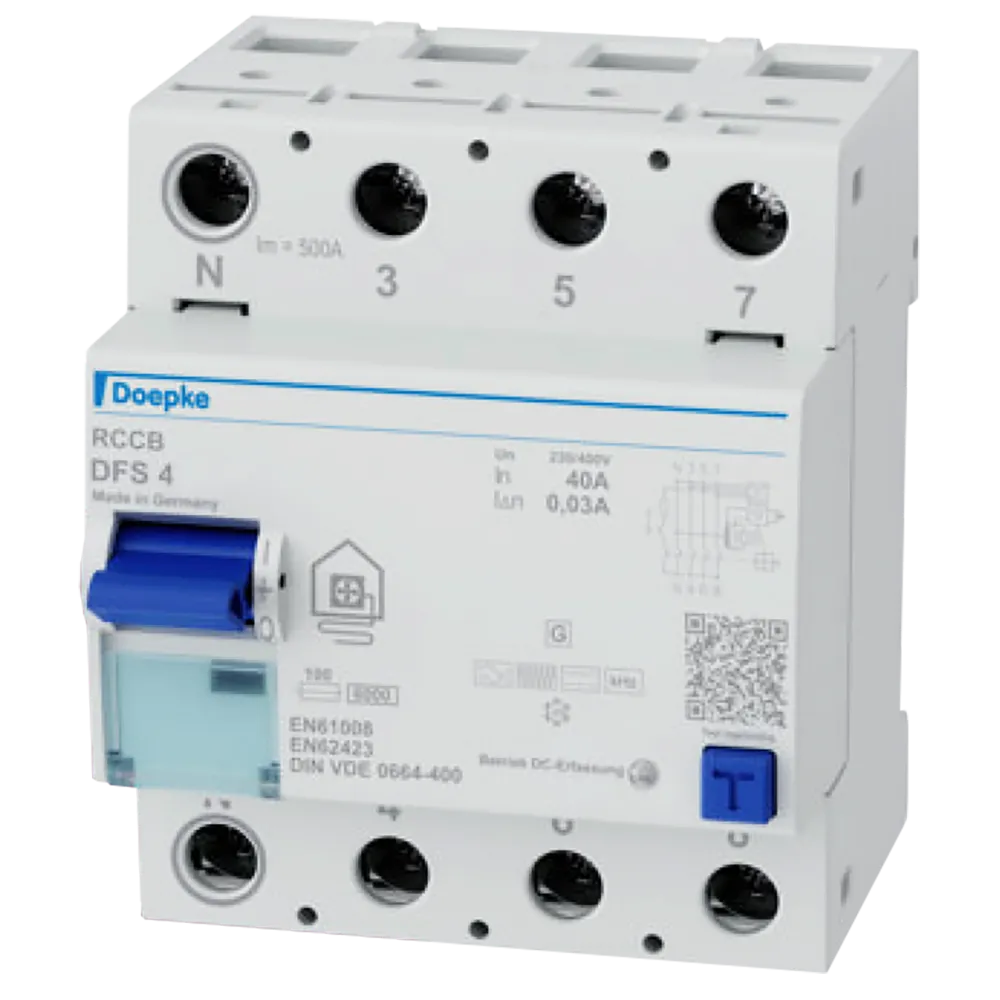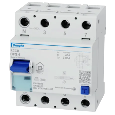 Typ B, für Fehlerströme mit Frequenzen und Mischfrequenzen von 0 Hz bis 20 kHz, geeignet für private, gewerbliche und industrielle Installationen mit TN-S-, TT- und TN-C-S-Systemen, in denen Wärmepumpen zum Einsatz kommen, HP-optimierte Kurzzeitverzögerung für die Absicherung von Wärmepumpen, berührungssicher, Kurzschluss-Schaltvermögen 10kA, Kältefest bis -25°C, Bauhöhe 85mm, IP40, entsprechend DIN VDE 0664-400, Brandschutz gemäß VDE 0100-420, VDE