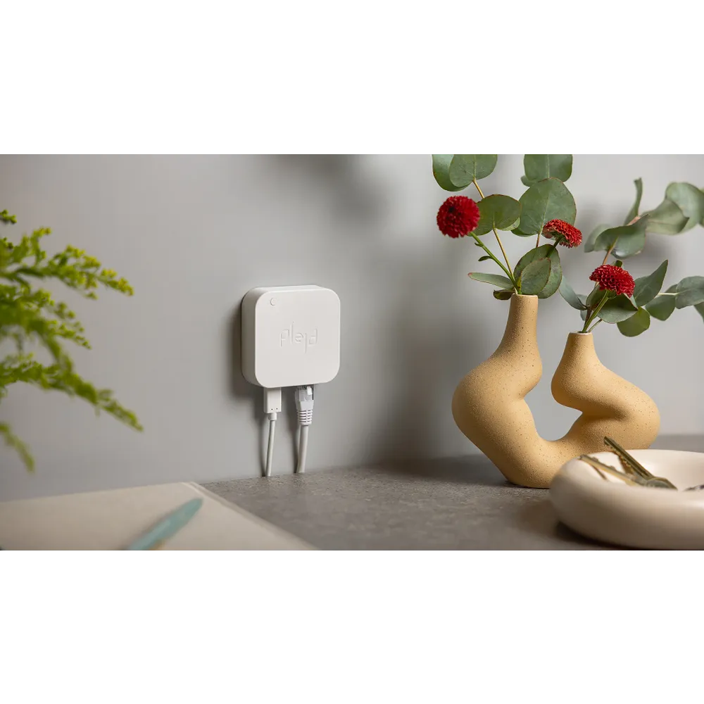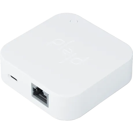 zur Verbindung des Plejd-Netz mit dem Internet, zur Fernsteuerung, erhält die Zeitfunktionen bei Stromausfällen aufrecht, Urlaubsmodus, ermöglicht die Integration in Systeme von Drittanbietern, wie z.B. Google Home, Apple HomeKit®, Alexa und Homey, Stromversorgung über mitgelieferten USB-C-Adapter, LAN-Verbindung über Ethernet/RJ45, Funkreichweite ca. 10m in Innenräumen, 2,4 GHz-Netz