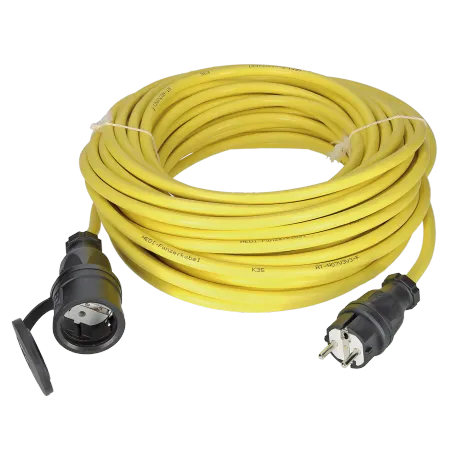 mit schlagfestem Stecker und Kupplung mit Deckel schwarz, mit doppeltem Erdungssystem, für besonders rauhen Betrieb im Freien, hochflexibel, wasserfest, öl- und säurebeständig, temperaturbeständig von -35°C bis +80°C, IP44