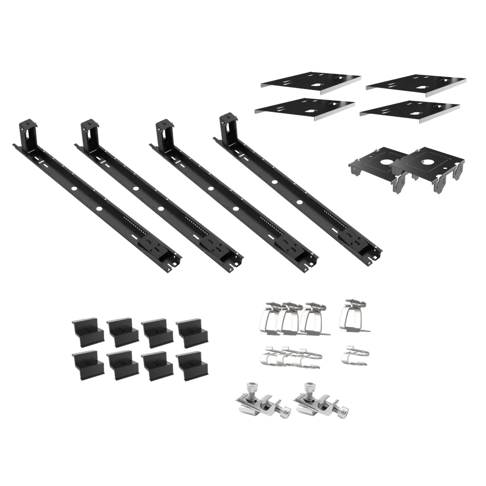 bestehend aus 4x Helios Base, 8x Endklemmen, 8x Schutzmatten, 4x Ballastierungswannen, 2 Steckverbinder, 4 Clips, 2x Blitzschutzklemme und 2x Erdungspad