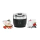 zur Zubereitung von Naturjoghurt und Frischkäse, Innenbehälter aus Edelstahl, Fassungsvermögen 1,2kg, doppelwandiges Gehäuse mit Touch Control Sensoren und LED-Display, 4 voreingestellte Programme mit unterschiedlichen Temperaturen für Naturjoghurt 42°C, Joghurt vegan/laktosefrei 38°C, Frischkäse 30°C und Kräuter-Extrakt 55°C, Programmdauer individuell einstellbar, Überhitzungsschutz, 24 Stunden Zeitschaltuhr mit Signalton und Abschaltfunktion, inklusive 4 Keramikbecher à 125ml, 2 Glasbehälter à 1,2l und ein Abtropfsieb jeweils mit Deckel, Gehäuse Kunststoff Ø195xH190mm