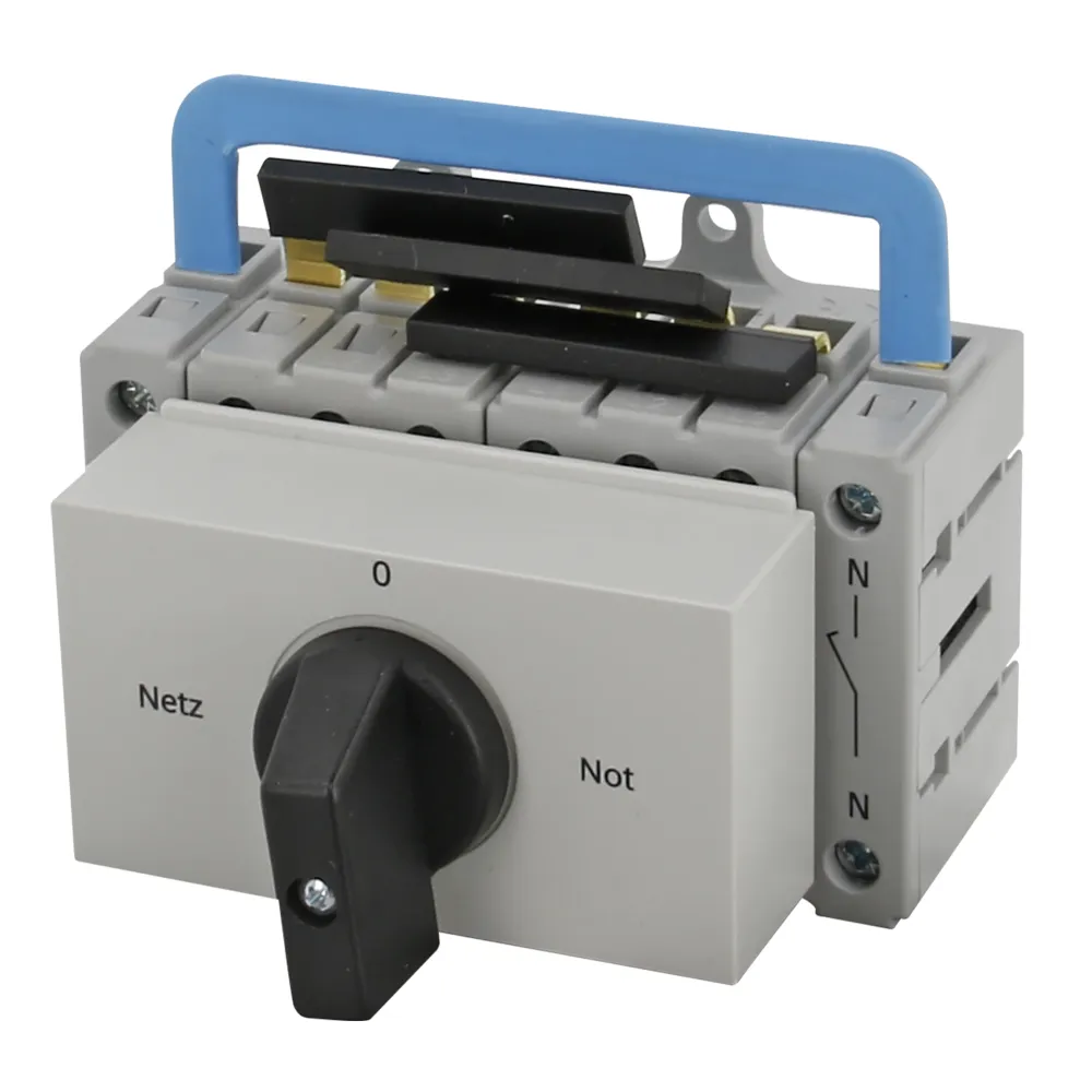 4-poliger Umschalter, 3 Schaltstellungen I-0-II, Nullleiter vor/nacheilend durchgeschalten, 690V, IP40