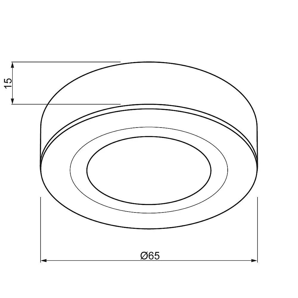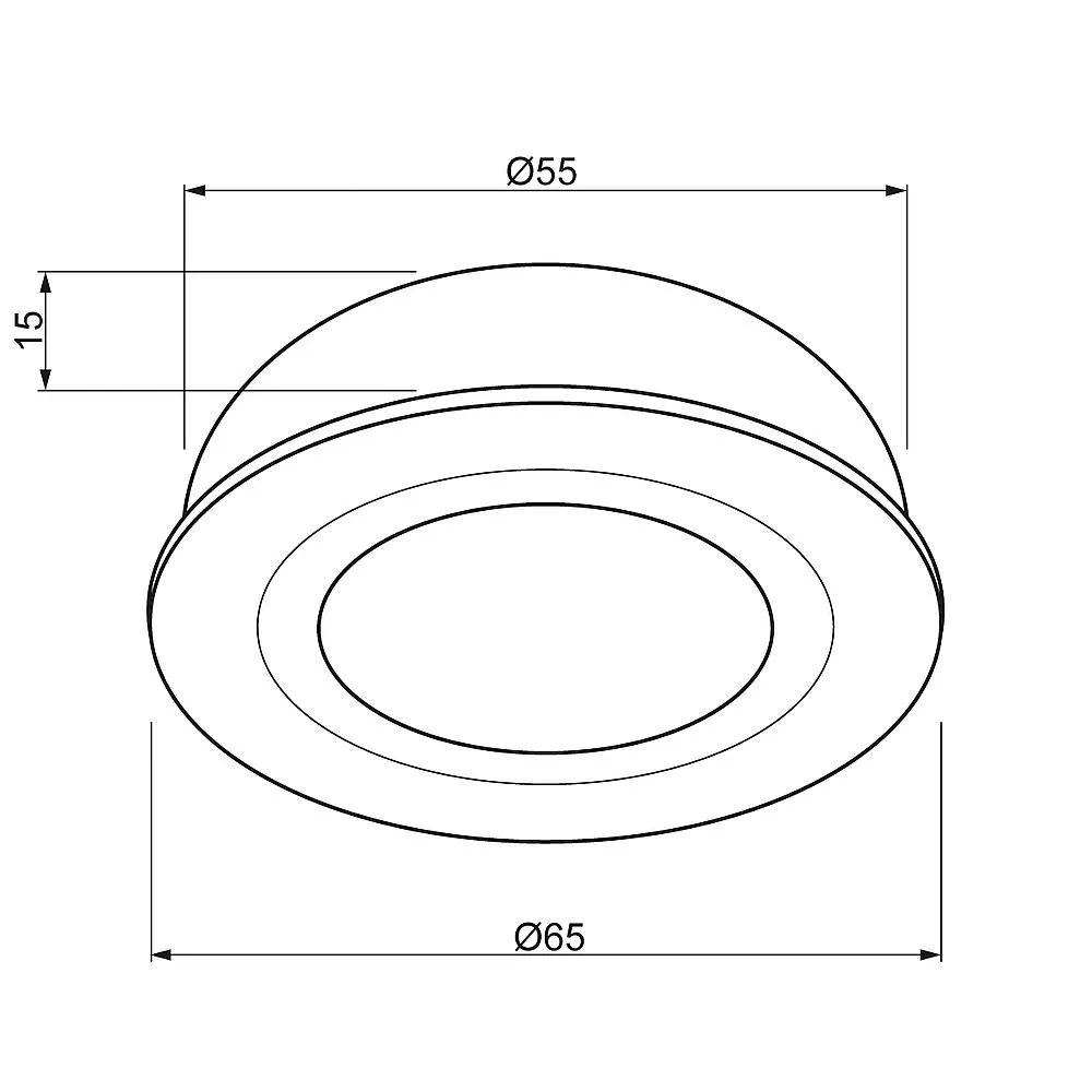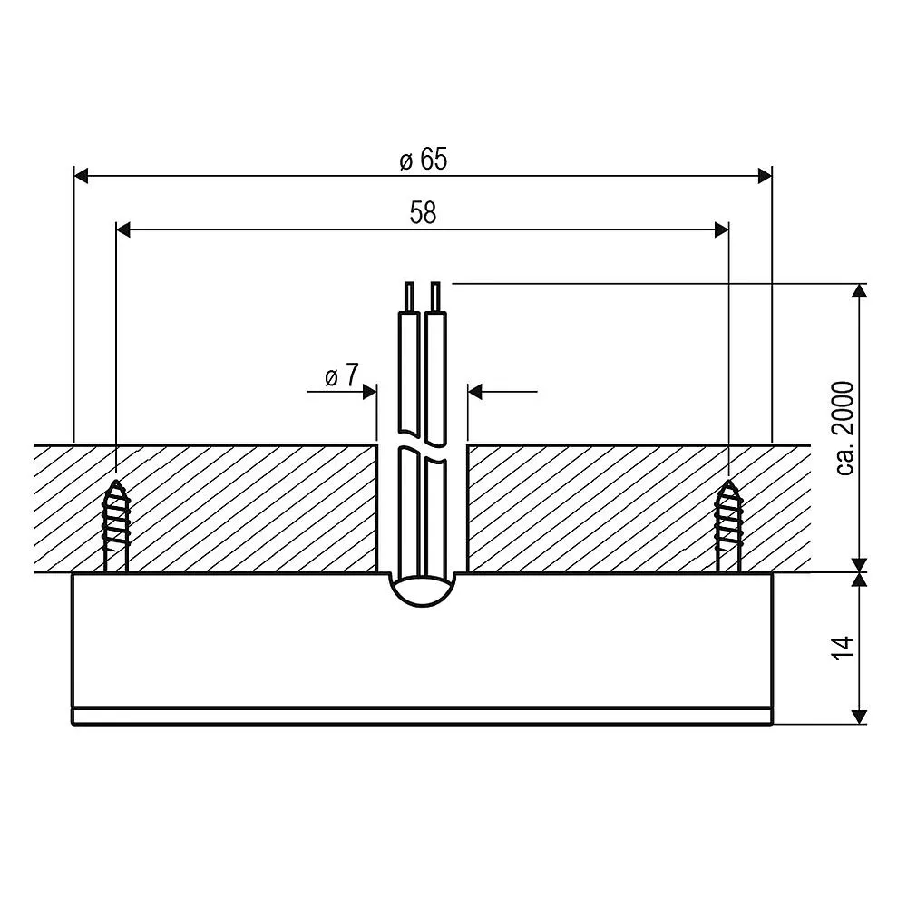 Alu-Druckguss, Glas satiniert, Abstrahlwinkel 90°, geeignet für Sacklochmontage, dimmbar, mit Zuleitung 2m und Anbaugehäuse für AP-Montage H17mm, MM, Eingangsstrom 350mAØ65 T15 AØ55mm