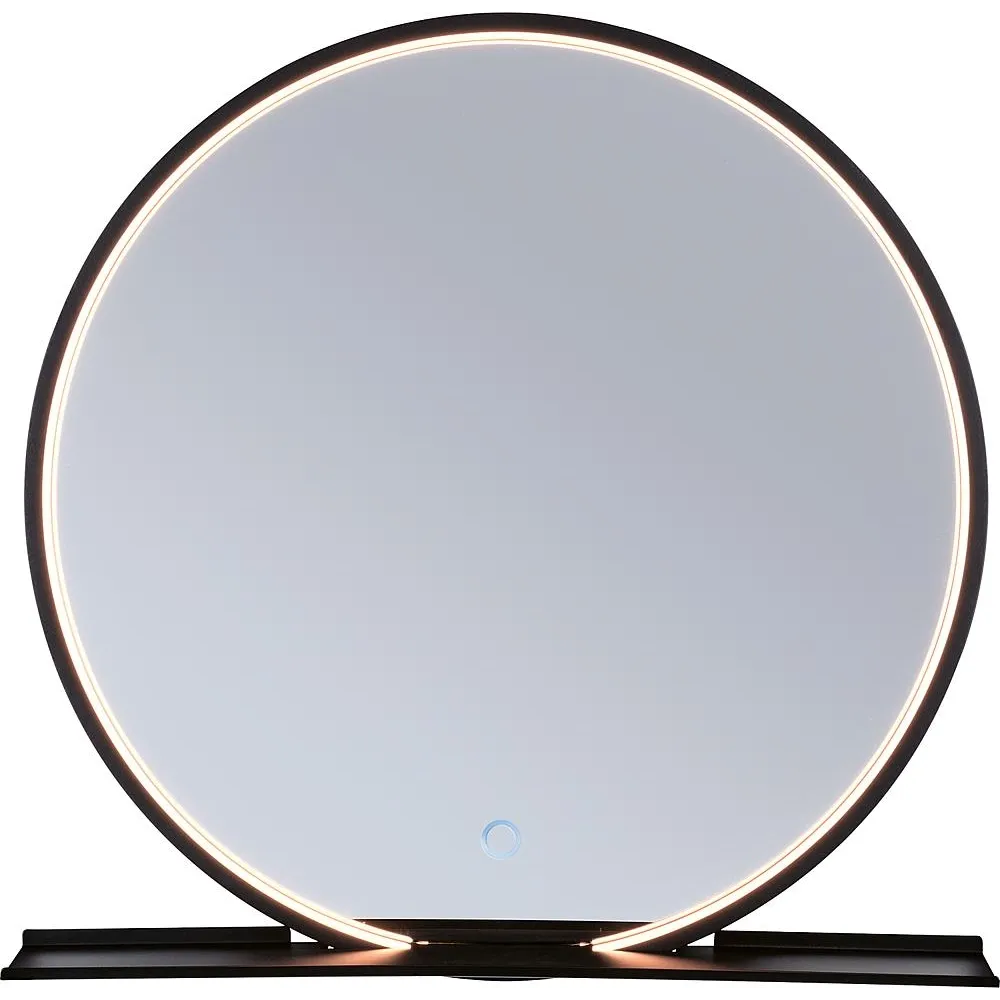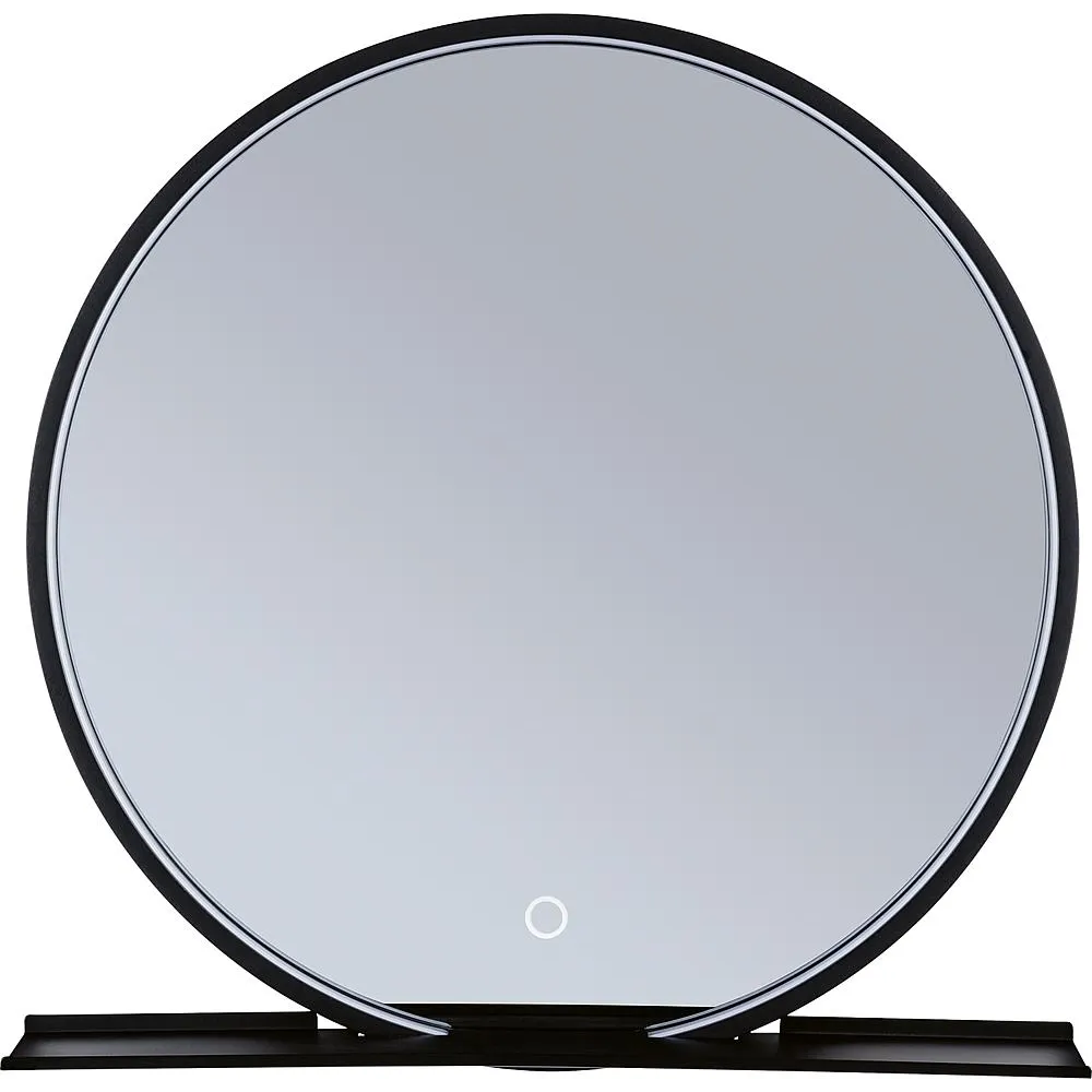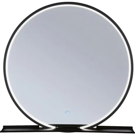 Sockel Metall schwarz, Spiegel mit satiniertem Leuchtrahmen, mit Steuerungstaste zum Wechseln der Lichtfarbe zwischen 2700K-6500K, inklusive Ablage, Ra>90, Schutzklasse II, Garantie 5 Jahre
