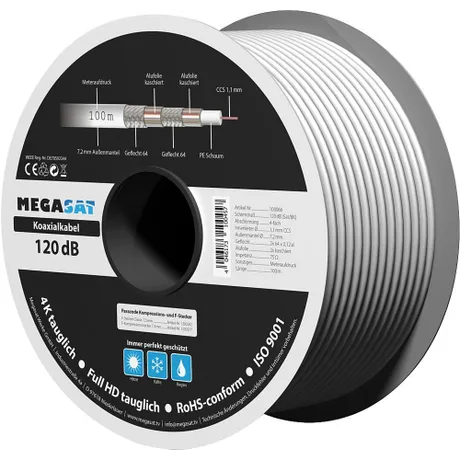 Megasat Koaxialkabel 120dB 100 m Rolle BauPVO-EN 50575/Brandklasse: E