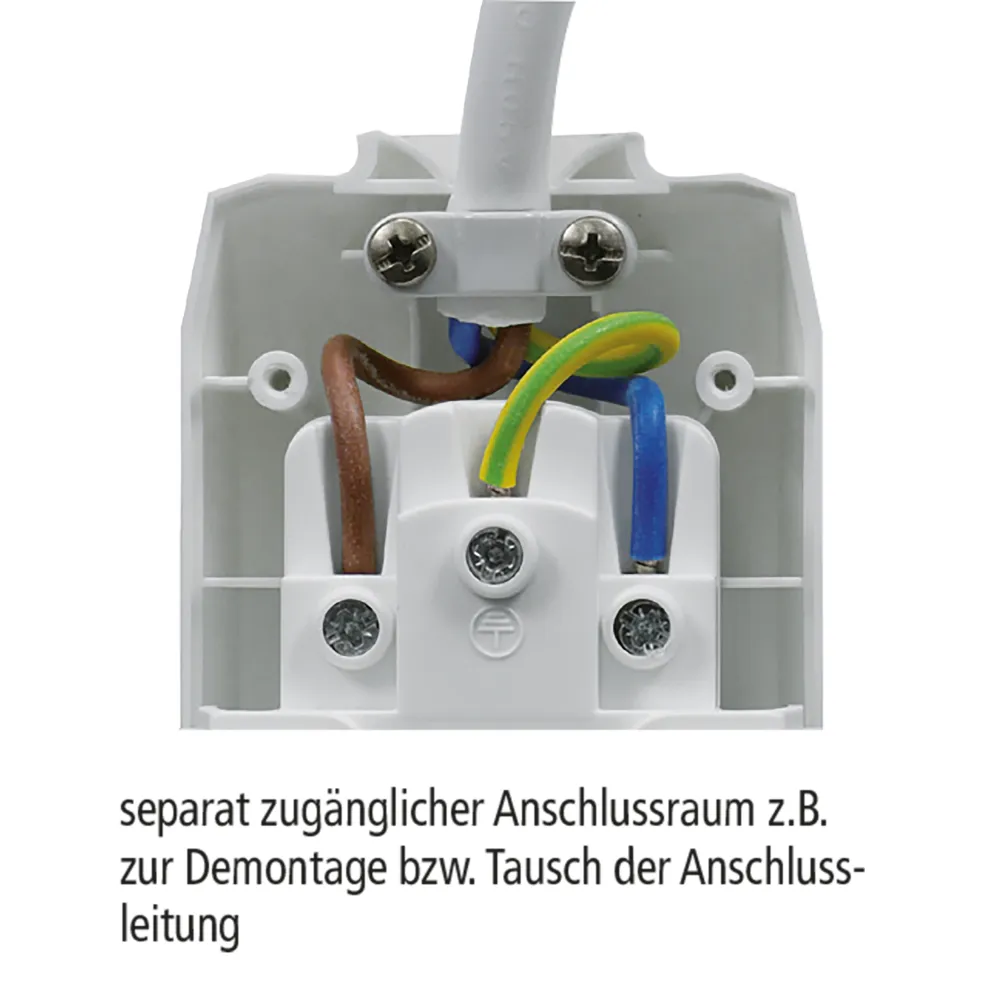 rot beleuchtet, geschraubt, mit Winkelstecker, universell aufrastbarer Wandhalterung mit Aufhängeöse und erhöhtem Berührungsschutz, Abgang seitlich 45°, VDE