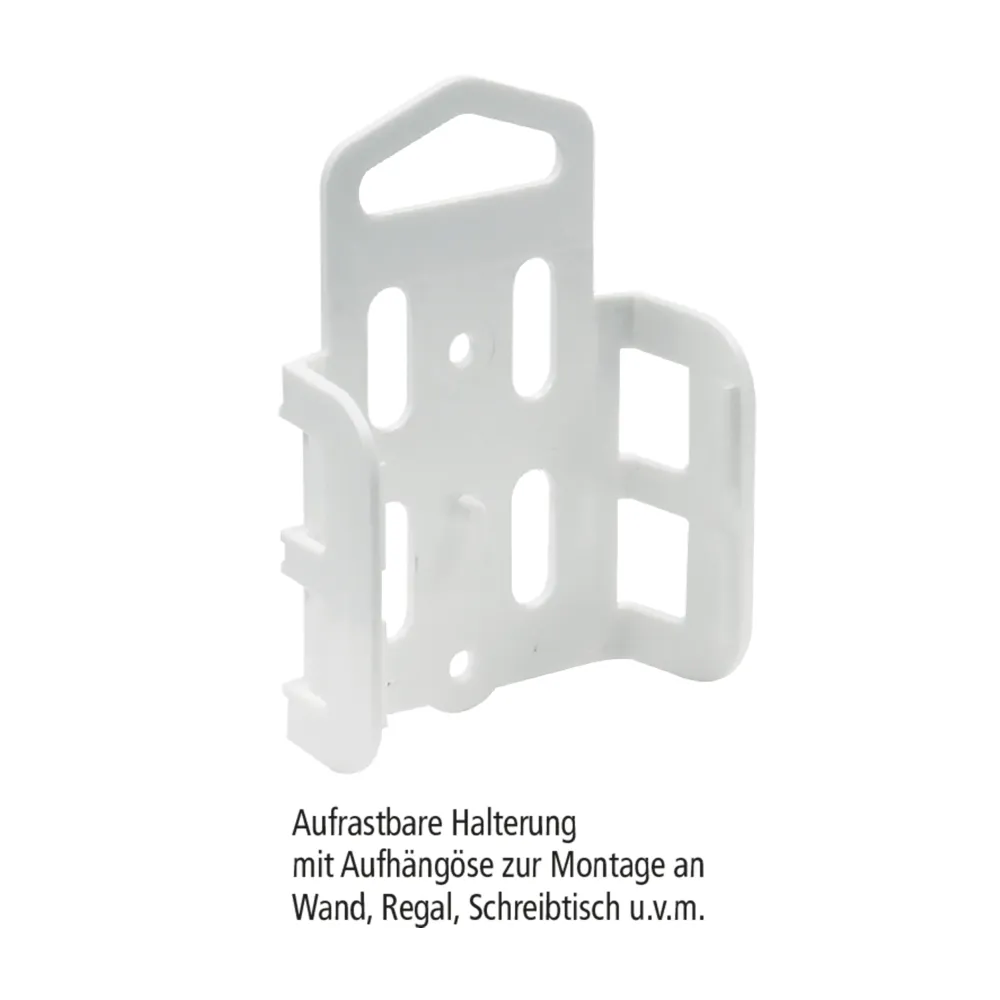 rot beleuchtet, geschraubt, mit Winkelstecker, universell aufrastbarer Wandhalterung mit Aufhängeöse und erhöhtem Berührungsschutz, Abgang seitlich 45°, VDE