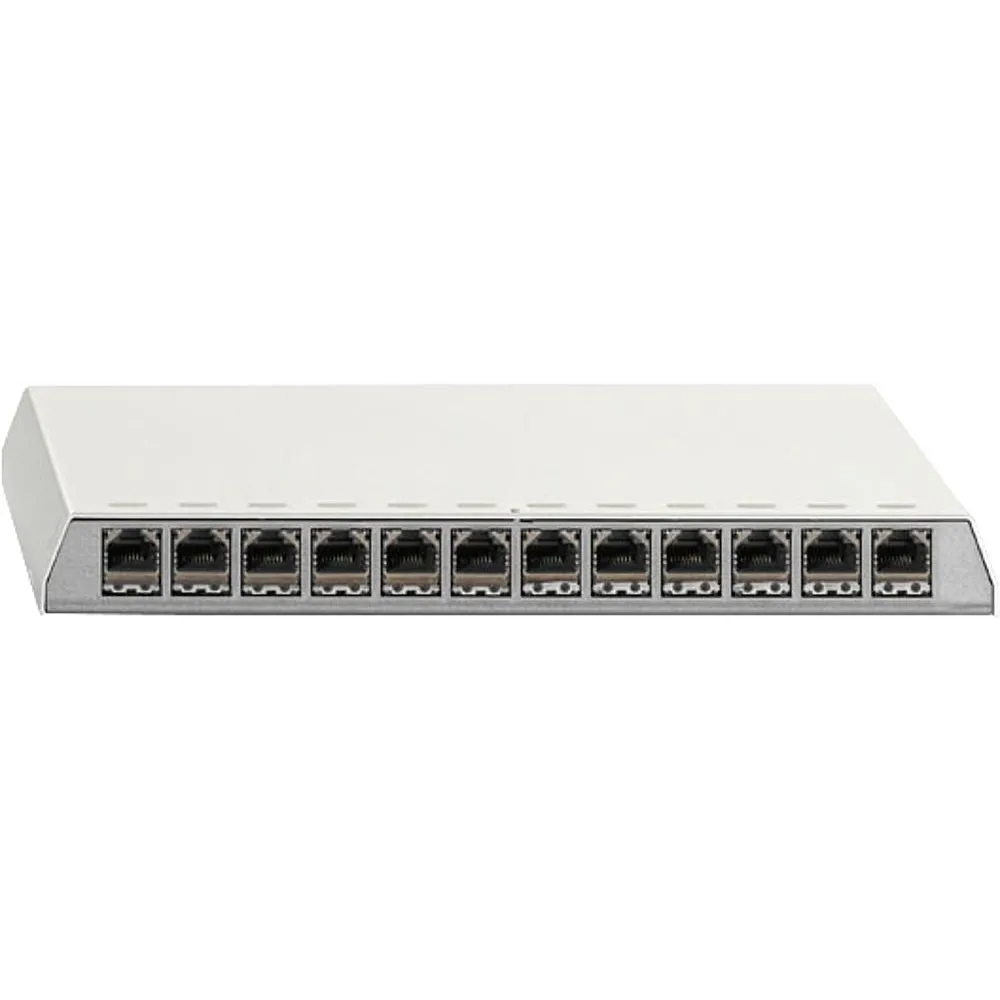 Leergehäuse mit 12 RJ45-Steckbuchsen, für Tisch- und Wandmontage, mit Adapter zur Hutschienenmontage, PoE-fähig, vollgeschirmte Metallausführung mit Rastdeckel und Potentialausgleichset 131x38x110mm