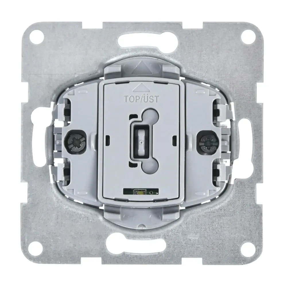 Kombi-Einsatz, UP trocken, mit Befestigungskrallen mit Rückstellfeder für Spreizbefestigung, Ausrichtung in Schalterdose nach Befestigung im Abdeckrahmen möglich, Schraubbefestigung, Steckklemmen als Verbindungsklemme für den Anschluss von starren Leitern bis 2,5mm²