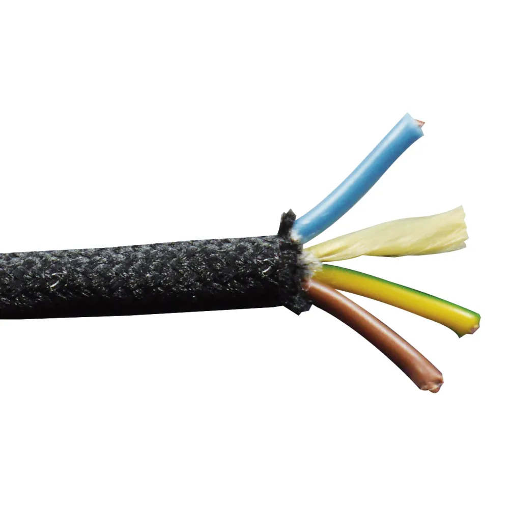 extra dünne flexible Rundleitung Ø 5,5mm, textilumflochten mit Aramidfaden als Zugentlastung geeignet, wärmebeständig bis 70C