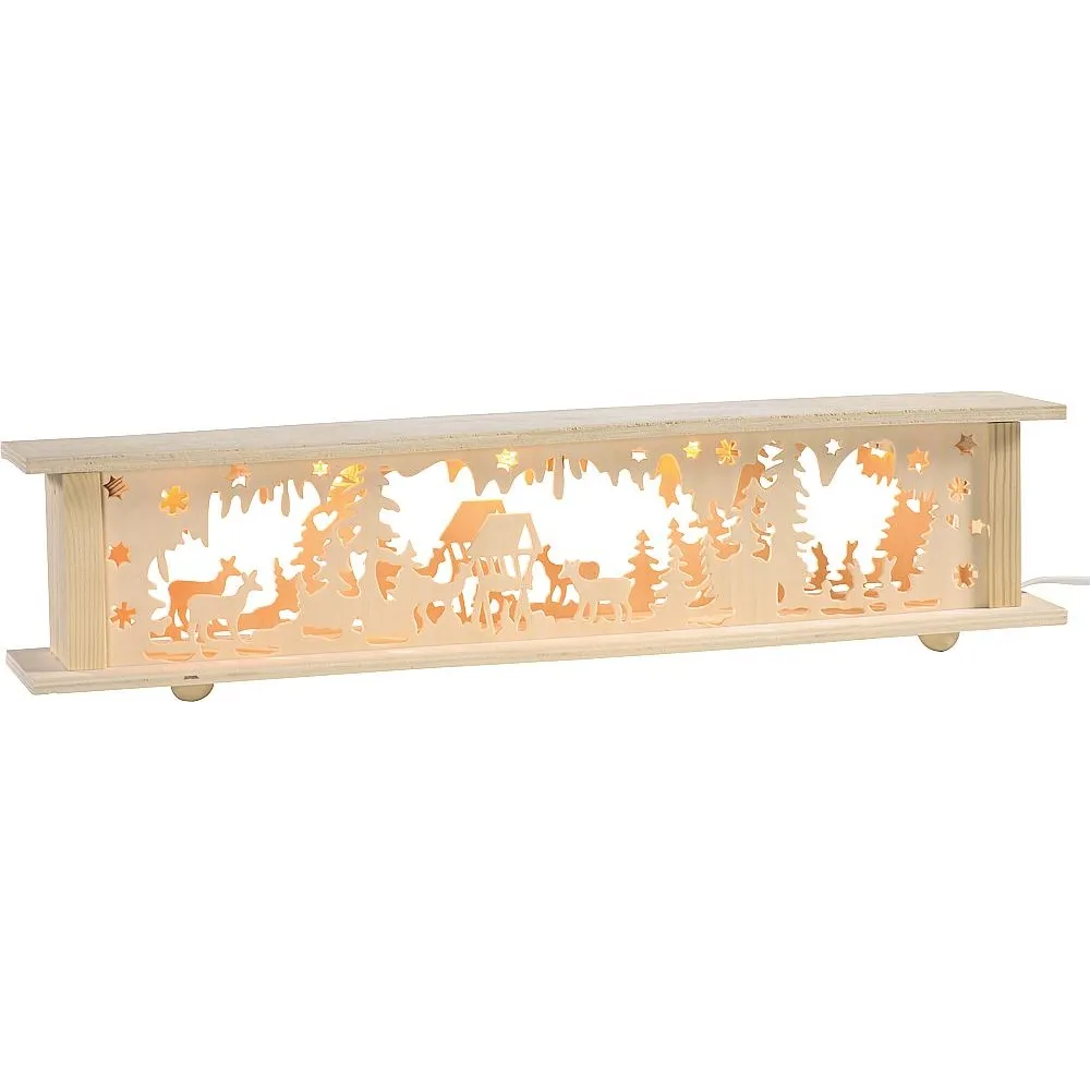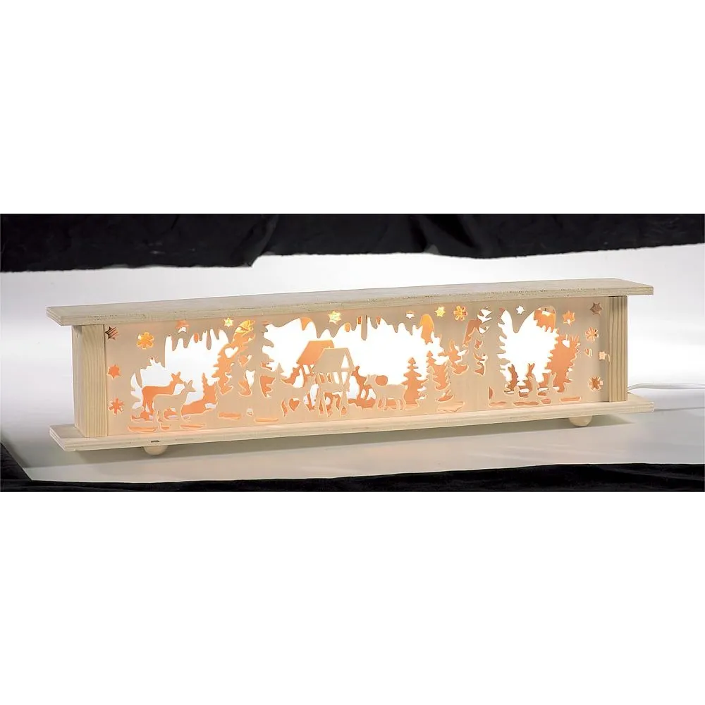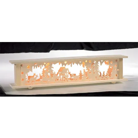 mit Minilichtern 24V/1,2W und Zuleitung mit Schnurzwischenschalter, Rahmen und Sägearbeit Holz natur mit Innenbeleuchtung