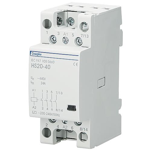 Beschreibung Speicher-Schütz aufrastbar auf Hutschiene 35mm, mit Schraubklemmen Spule 0,75-2,5mm², Spulenspannung 230V, Schaltkontakte 400/230V, Einbautiefe 60mm mit Schraubklemmen 1,5-10mm² und Berührungsschutz Technische Daten