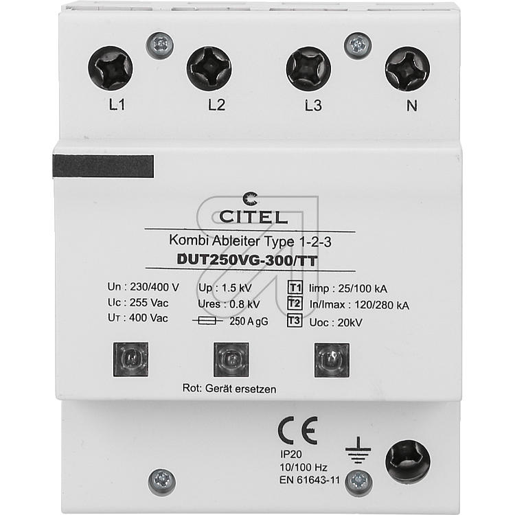 CITEL Kombi-Ableiter T1+T2+T3 4-polig (3+1), 4 TE, DUT250VG-300/TTBestell-Nr.: 13434500 ![]()